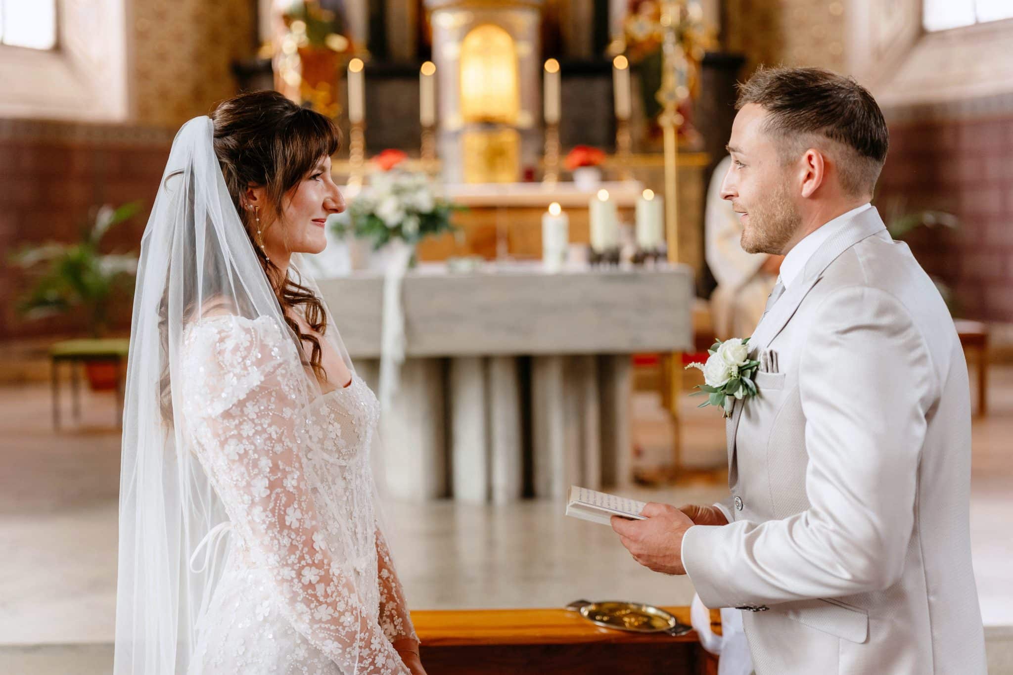 Ringtausch bei einer kirchlichen Trauung und einem Fest im Gut Rehbach